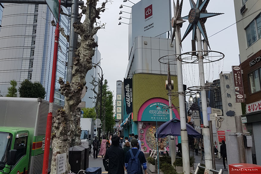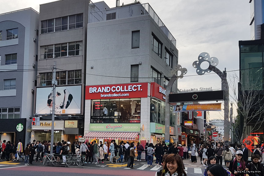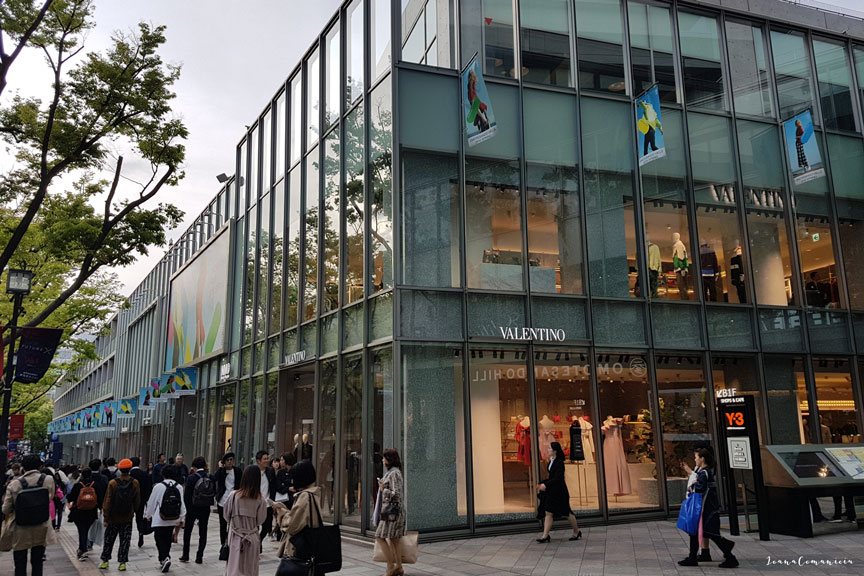 La sud de Takeshita Dori, se afla Omotesando, un bulevard lat, cu copaci pe ambele sala laturi, denumit uneori si Champs-Elysees din Tokyo. Aici se afla magazinele unor renumite case de moda, cafenele si restaurante celebre.