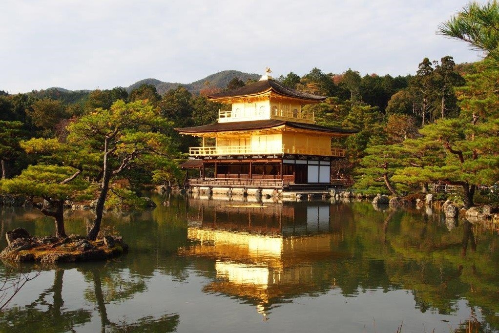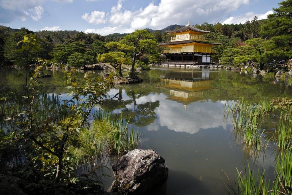 Kinkakuji (金 閣 寺, Pavilionul de Aur) este un templu Zen din nordul orasului Kyoto ale carui doua etaje superioare sunt acoperite complet cu frunze de aur.