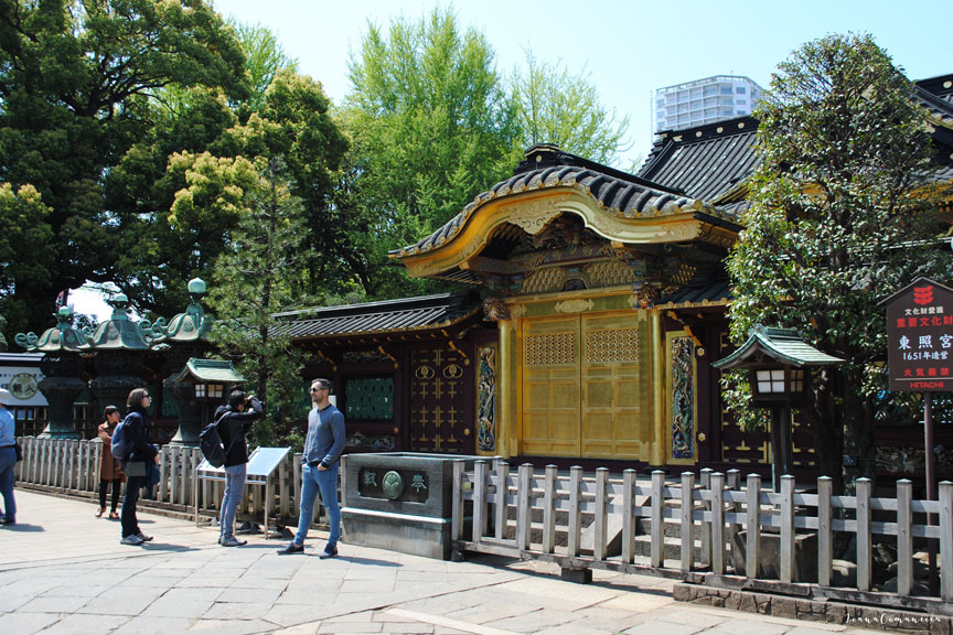 Parte a fostului Templu Kaneiji sunt Pagoda, Sanctuarul Toshogu, Templul Kaneiji, precum si Bentendo, dedicat zeitei Benten, pe o insula in mijlocul iazului Shinobazu.