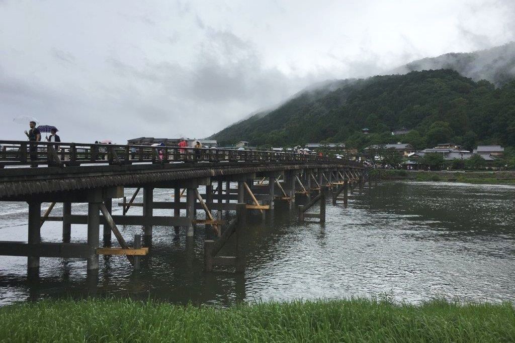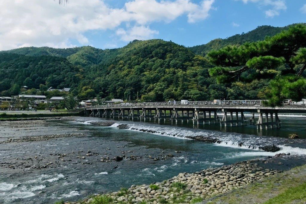 Podul Togetsukyo este cel mai important loc din Arashiyama. A fost construit initial in perioada Heian (794-1185), iar cel mai recent a fost reconstruit in anii 1930. Podul este deosebit de frumos in combinatie cu peisajul montan impadurit din fundal. Langa pod, se afla un parc cu zeci de ciresi.