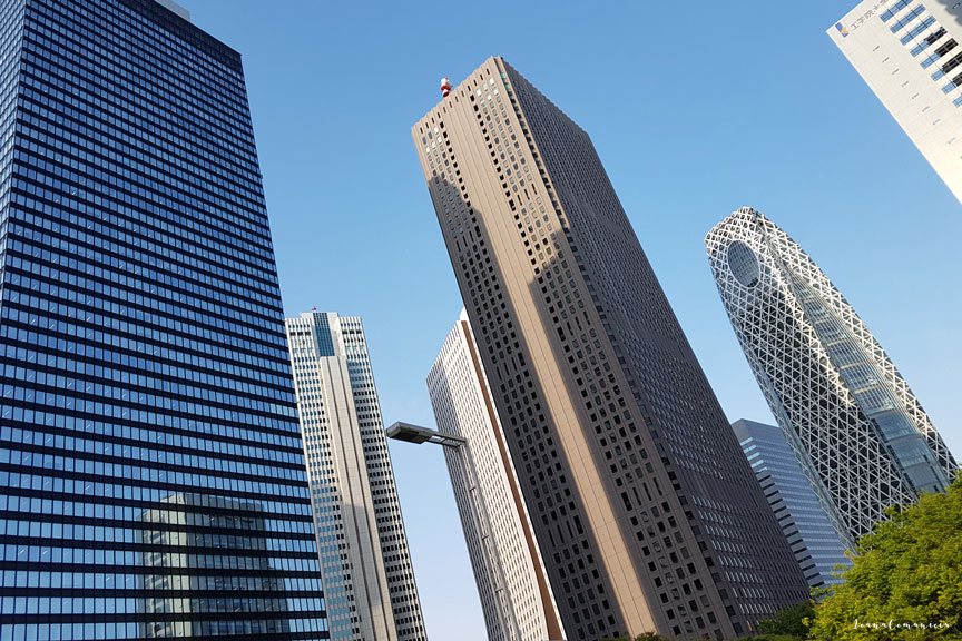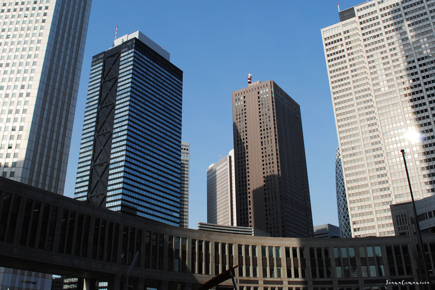 In vestul statiei se afla districtul de zgarie-nori, unde se afla multe dintre cele mai inalte cladiri din Tokyo, inclusiv turnurile gemene ale Tokyo Metropolitan Government Office, ale carui punti de observatie sunt deschide publicului gratuit. La nord-est de statie este Kabukicho, cel mai mare district al lanternelor rosii din Japonia. Magazinele, mall-urile si magazinele de electronice inconjoara statia Shinjuku.