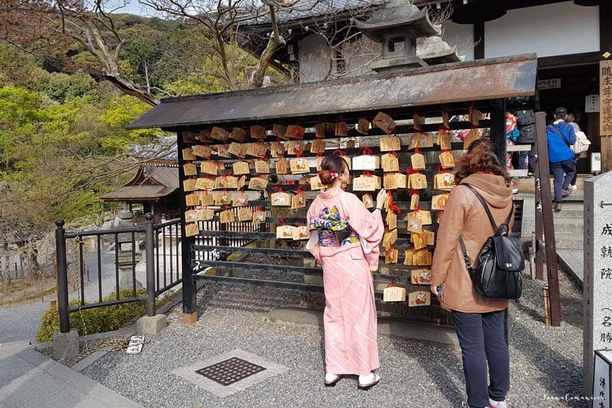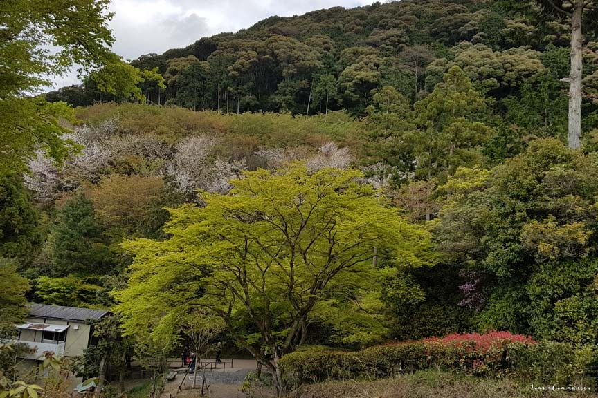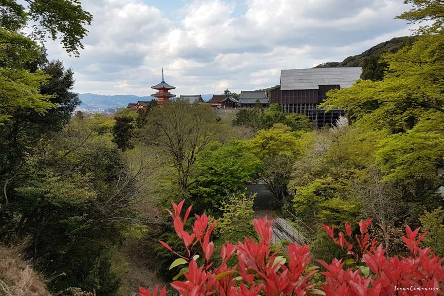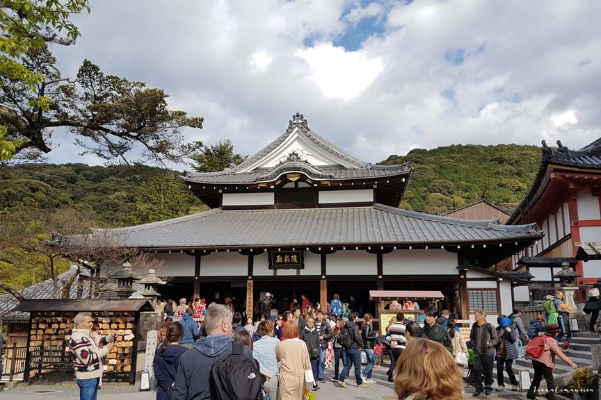 Accesul in Kiyomizudera se face prin strazile aglomerate ale districtului Higashiyama, cu numeroase magazine si restaurante.