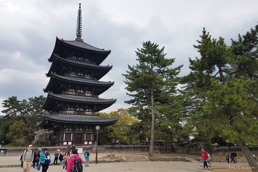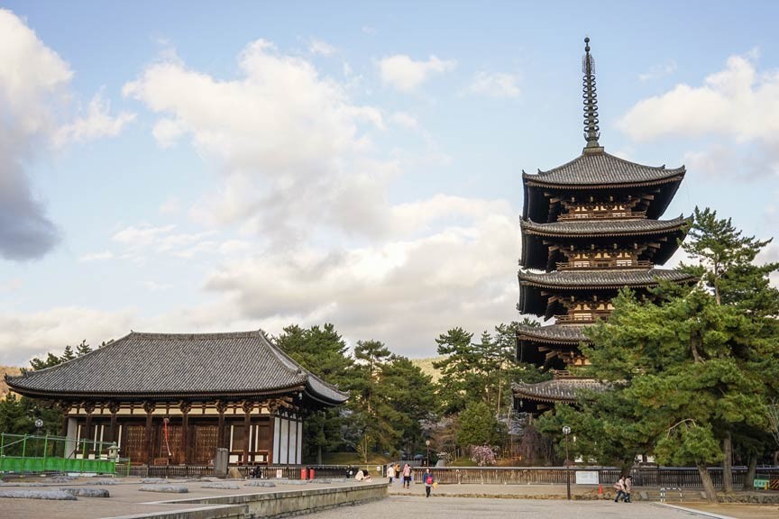 Templul are mai multe cladiri de mare valoare istorica, inclusiv o pagoda cu cinci etaje si o pagoda cu trei etaje. Cu o inaltime de 50 de metri, pagoda cu cinci etaje este cea de-a doua cea mai inalta pagoda din Japonia, cu doar sapte metri mai scunda decat pagoda cu cinci etaje a Templul Toji din Kyoto. Pagoda Kofukuji a fost construita pentru prima data in 730 si a fost reconstruita cel mai recent in 1426.
