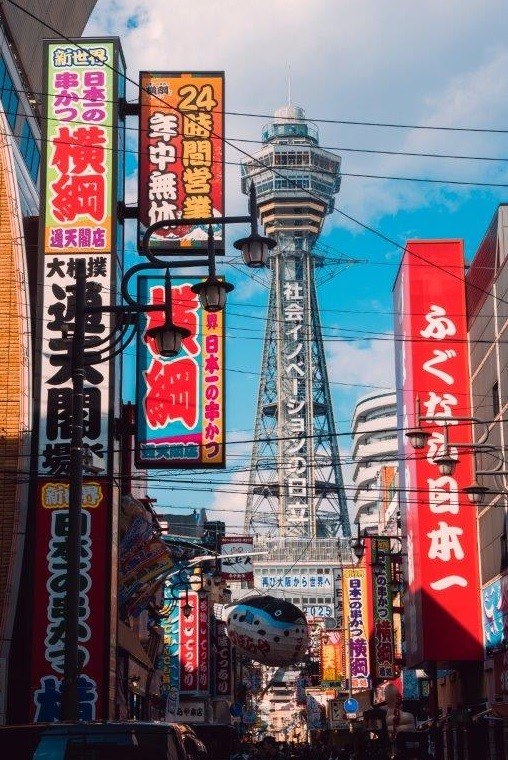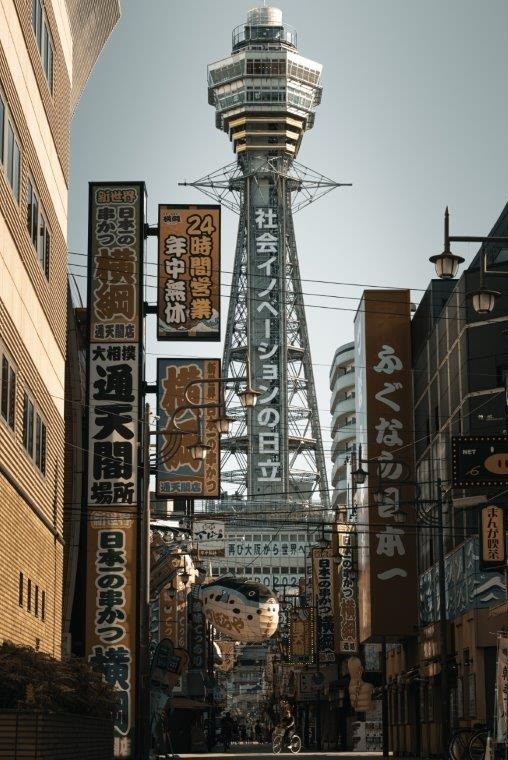 Turnul Tsutenkaku (通天閣, Tsūtenkaku, Turnul care atinge cerul), proprietatea Tsūtenkaku Kanko Co., Ltd. (通天 閣 観 光 株式会社, Tsūtenkaku Kankō Kabushiki-gaisha), este situat in districtul Shinsekai din Naniwa-ku, Osaka. Turnul are o inaltime de 103 de metri, puntea principala de observare se afla la o inaltime de 91 de metri.